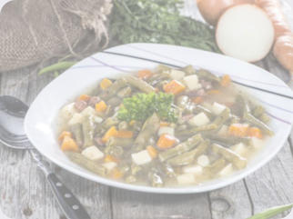 Coat meat with flour. Add all other ingredients except tomatoes, beans and