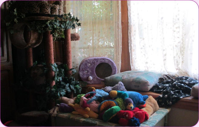 become the “kids” nap and toy area. Samira has a large kitty