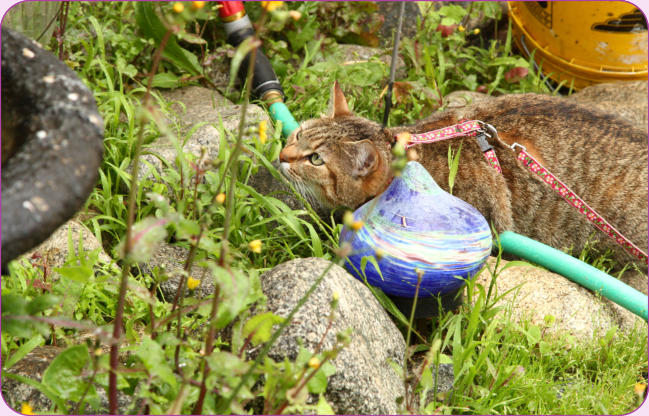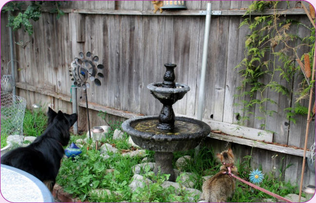 backyard outings. In the picture with the fountain there is a