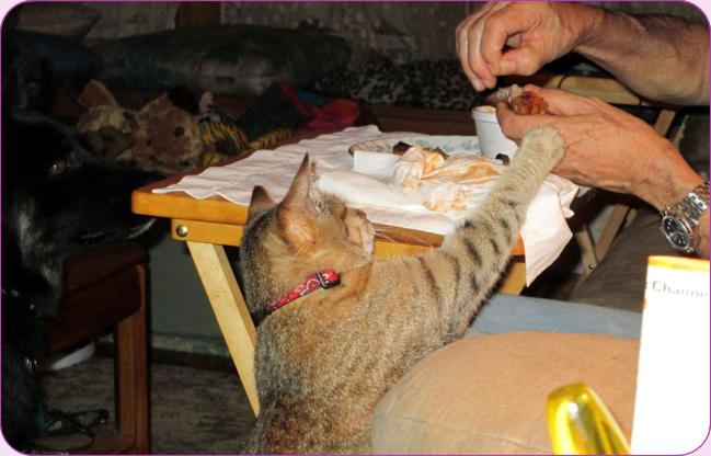 to get too close! Then we have one of her begging meat from